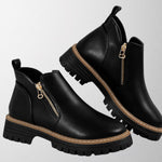 Olivia – Trendy kotníkové boty v černé PU kůži pro ženy